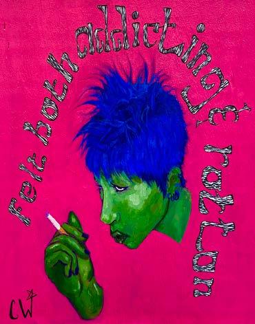 THESE TWO PIECES FIT TOGETHER TO CREATE A STORY OF ADDICTION, LITERAL WITH THE CIGARETTES AND FIGURATIVE WITH THE RELATIONSHIP BETWEEN THE TWO PEOPLE.