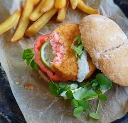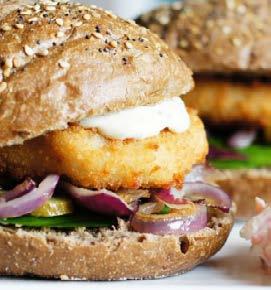 zalmburger (263050), hamburgerbroodje naar keuze, rode paprika, limoen, sla naar keuze, tartaarsaus
