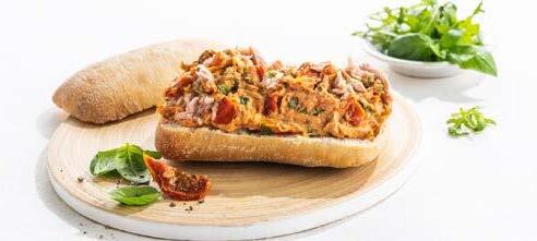 Salade de thon à l’italienne à base de tomates séchées, basilic, pignons de pin enrichie de grana padano.