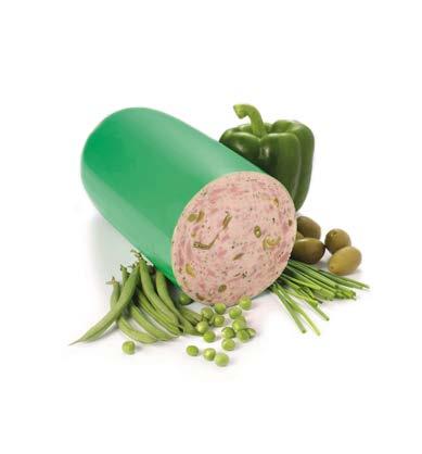 Frisse groenteworst op basis van 100% gevogeltevlees: kip en kalkoen. Verrijkt met 5 groene groenten: paprika, olijven, erwtjes, boontjes en bieslook, dus het ideale gezonde broodbeleg.