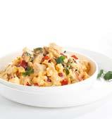 Morceaux de filet de dinde légèrement épicés en sauce crème de tomates au poivre rose.