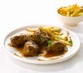 Tendres morceaux de cuisse de dinde, délicieusement marinés et cuits. Accompagnés d’une sauce crémeuse à la moutarde.