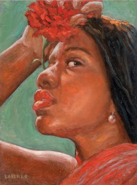 A obra representa uma jovem mulher negra, com traços suaves e expressão serena, segurando um cravo entre os dedos. A flor faz alusão ao 25 de abril, um marco na história de Portugal, enquanto a pose e a atmosfera remetem à icônica pintura da “Mulher com Brinco de Pérola”, de Vermeer. A combinação destes elementos procura criar uma narrativa visual poderosa, que evoca questões de identidade, história e beleza.