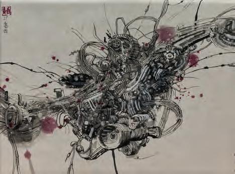 Acrílico, caneta e tinta-da-china sobre papel de arroz montado em papel | 24 x 33 cm