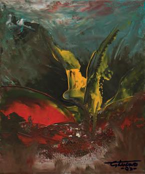 Quando estou diante da minha tela, sinto-me envolvida num turbilhão de emoções, cada pincelada é um testemunho da minha viagem de criação. A peça que tenho diante de mim é uma sinfonia de cores, uma dança de luz e sombra que conta uma história.