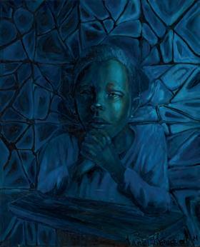 A obra apresentada pertence a uma série de pinturas cujas narrativas exploram uma qualidade metafórica ou enigmática em temas como o vazio, a alienação, o isolamento e o irrespondível. Tal como a restante série, esta obra procura uma sensação de inquietação através dum elemento dissonante e duma mistura de realidade com a ficção - um momento suspenso entre uma memória do passado e a experiência do presente.