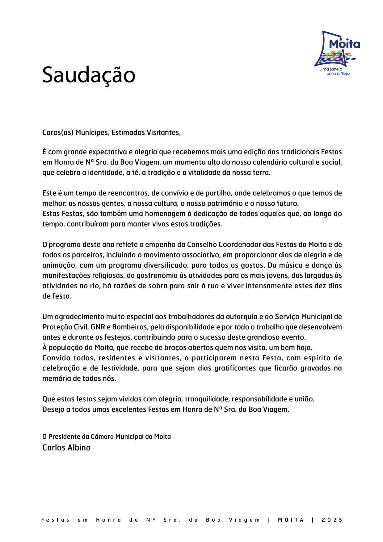 O momento mais aguardado chegou. Foi apresentado no dia 30 de agosto o programa oficial das Festas em Honra de Nossa Senhora da Boa Viagem 2025.