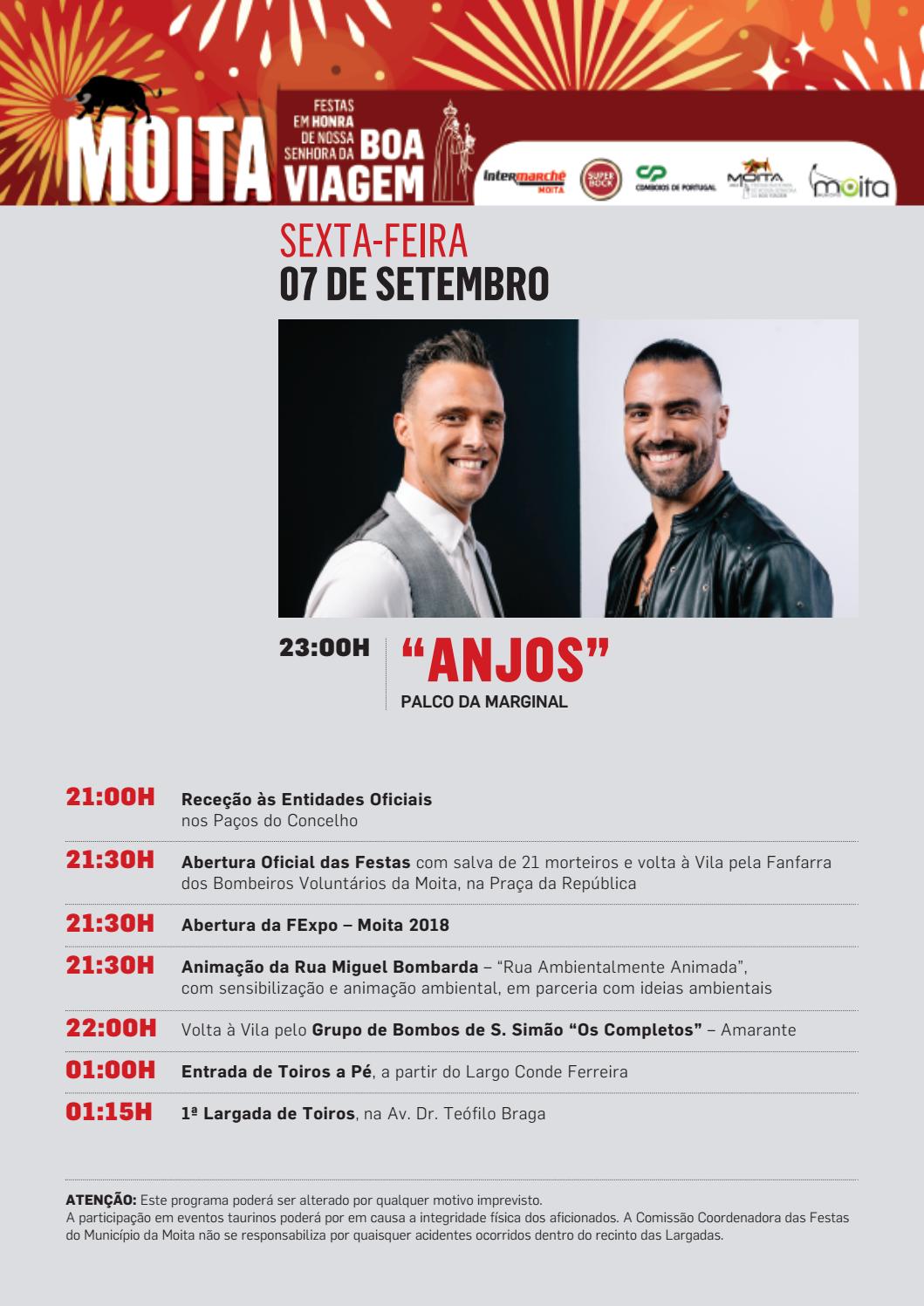 ATENÇÃO: Este programa poderá ser alterado por qualquer motivo imprevisto. A participação em eventos taurinos poderá por em causa a integridade física dos aficionados. A Comissão Coordenadora das Festas do Município da Moita não se responsabiliza por quaisquer acidentes ocorridos dentro do recinto das Largadas.