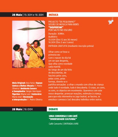 “DESPERTAR” POR SALTO NO ESCURO Duração: 30Min. Auditório 15:00H (Dos 12 aos 36 meses) 16:30H (Dos 3 aos 5 anos) ENTRADA GRATUITA (mediante inscrição prévia)