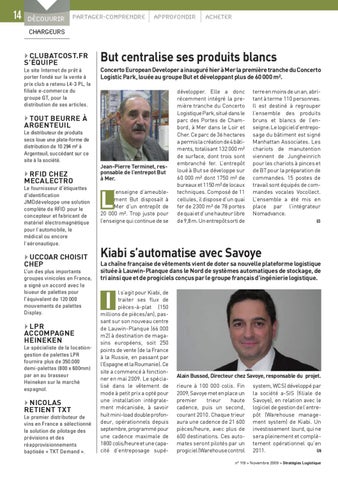 Kiabi s’automatise avec Savoye La chaîne française de vêtements vient de doter sa nouvelle plateforme logistique située à Lauwin-Planque dans le Nord de systèmes automatiques de stockage, de tri ainsi que et de progiciels conçus par le groupe français d’ingénierie logistique. l s’agit pour Kiabi, de traiter ses flux de pièces-à-plat (150 millions de pièces/an), passant sur son nouveau centre de Lauwin-Planque (66 000 m2) à destination de magasins européens, soit 250 points de vente (de la France à la Russie, en passant par l’Espagne et la Roumanie). Ce site a commencé à fonctionner en mai 2009. Le spécialisé dans le vêtement de mode à petit prix a opté pour une installation intégralement mécanisée, à savoir huit mini-load double profondeur, opérationnels depuis septembre, programmé pour une cadence maximale de 1800 colis/heure et une capacité d’entreposage supé-