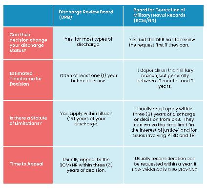 Comparing the different processes for accessing benefits after receiving a less-than-honorable discharge: