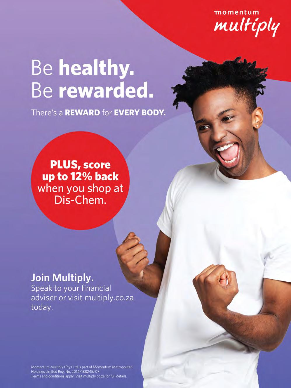 All products, prices and special offers displayed or advertised in this magazine were correct at the time of print. Pricing and product availability in-store or online are subject to change without prior notice. While every effort is made to ensure accuracy and relevance in this regard, Dis-Chem and Io Media accept no responsibility for pricing changes, discrepancies and typographical errors, and cannot be held liable for any potential loss, damage or expense incurred as a consequence. In instances of errors, Dis-Chem reserves the right to cancel offers advertised at the incorrect price. Additional restrictions may apply.