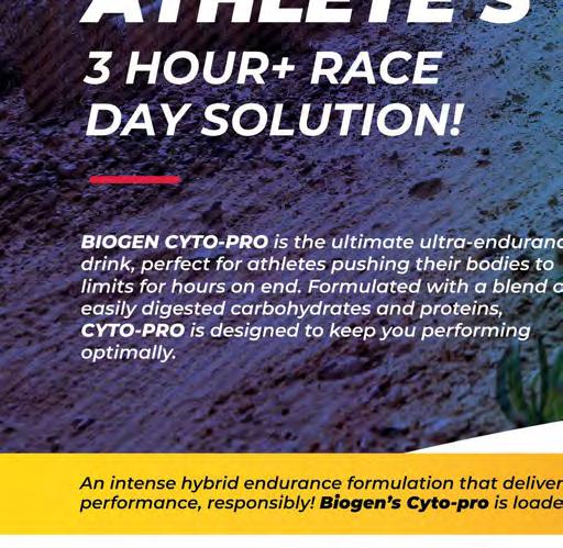 We’re also putting the endure in endurance with our mix of running content in this issue. We chat to Nedbank Running Team Manager and former Comrades winner Nick Bester for his taper tips to have the best leadup to race day, with recommendations on supplements to get you to the start line fully recovered and ready to race (pg 124)! And don’t miss our 5 immune-boosting tips on page 62 to keep those pre-race germs at bay.