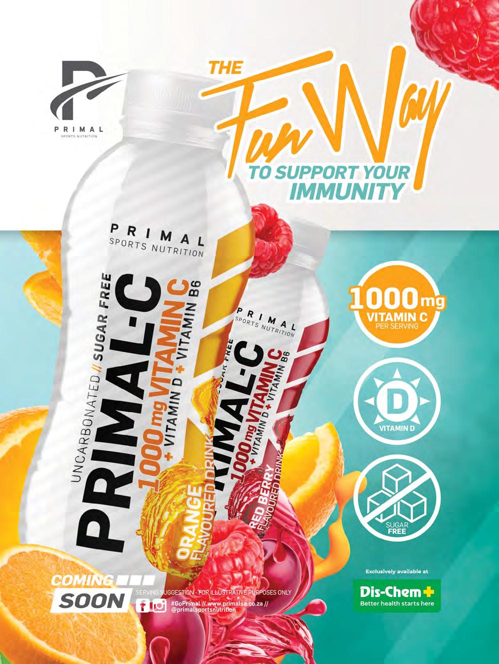 Add some variety to your daily routine by skipping the chalky tablets and bland pills for your morning fix. Rather get your vitamin boost from new Primal-C, a refreshing uncarbonated, sugarfree drink that contains 1,000mg of vitamin C, along with vitamin D, vitamin B6 and magnesium to support immune function and energy levels. Available in a tangy Orange and Red Berry flavour.