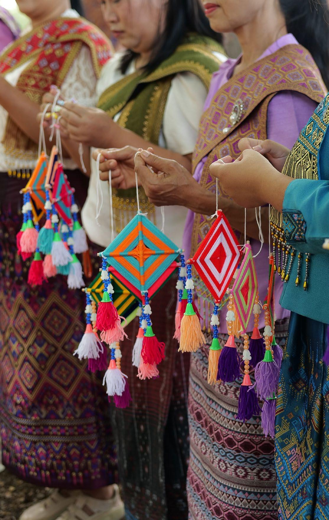 Tung Making: Crafting colourful paper flags that symbolise both Buddhist faith and the Lao Vieng people’s migration story.