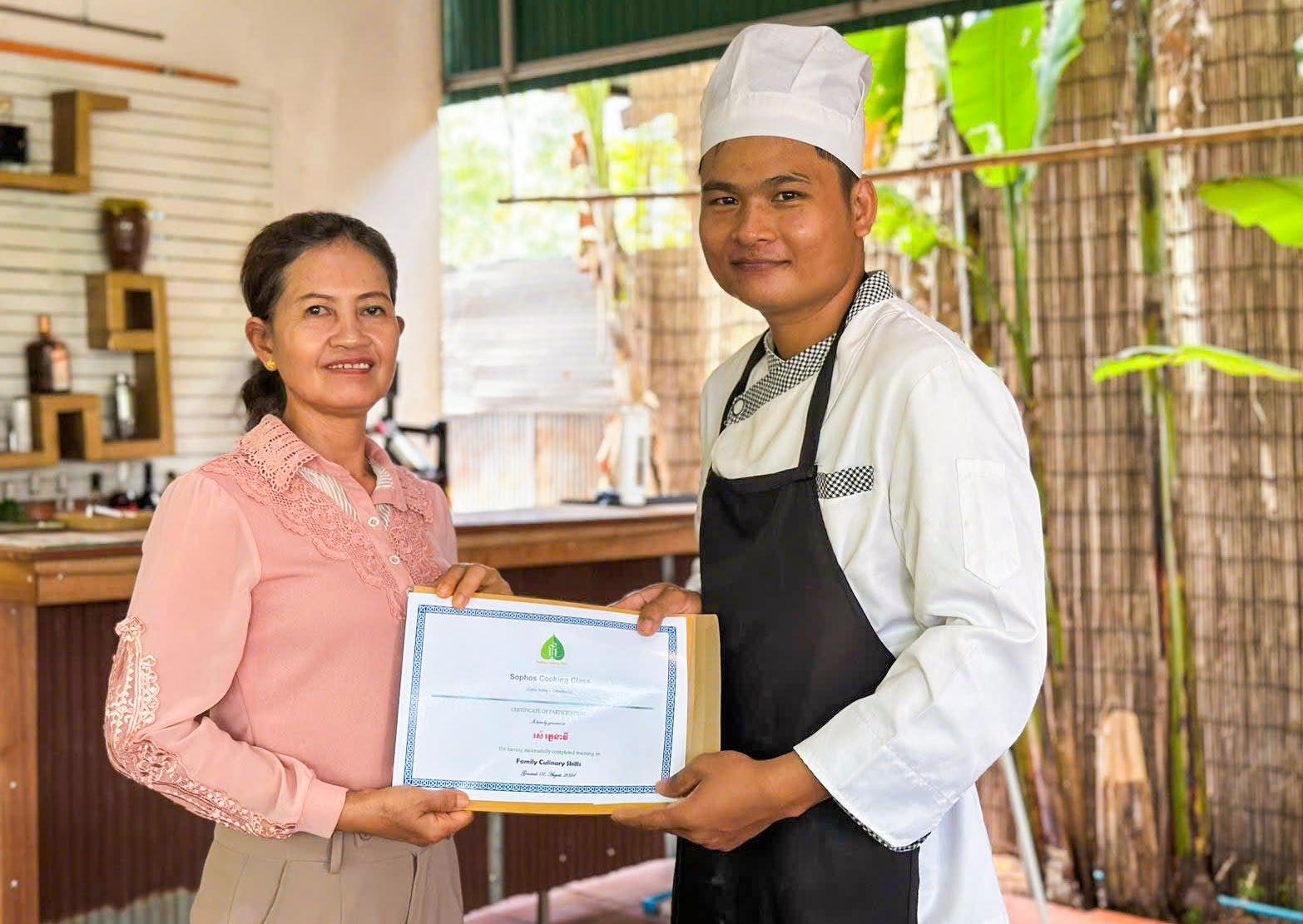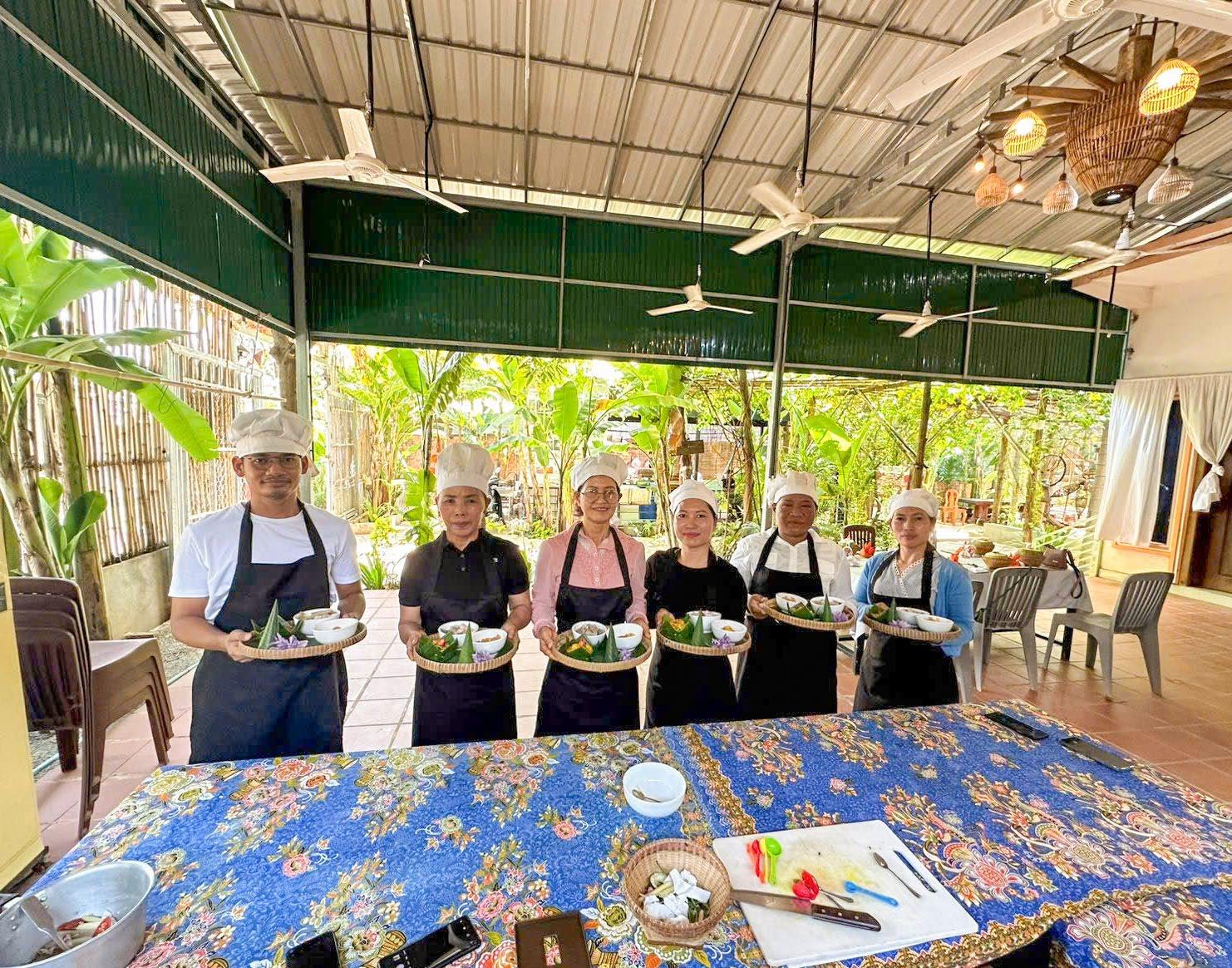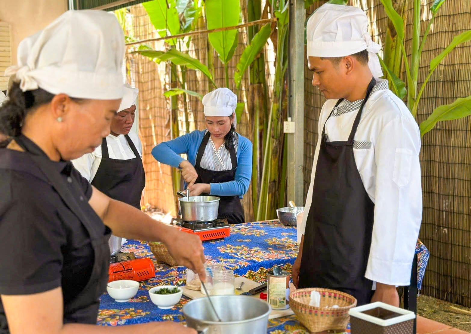 On 7 August, the Trei Nhoar homestay cooking team completed a half-day training session with Sophos Cooking Class. The session focused on standardising traditional recipes, food safety, and client engagement, as well as introducing new Cambodian dishes.