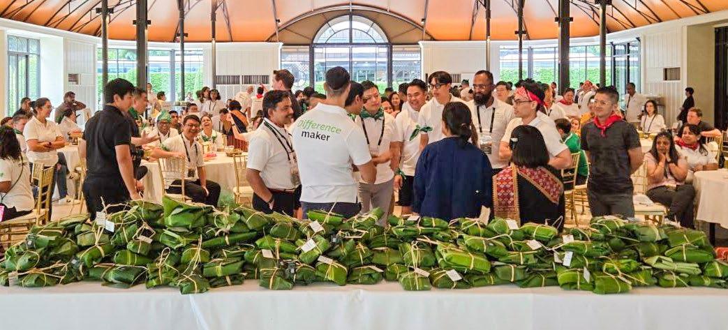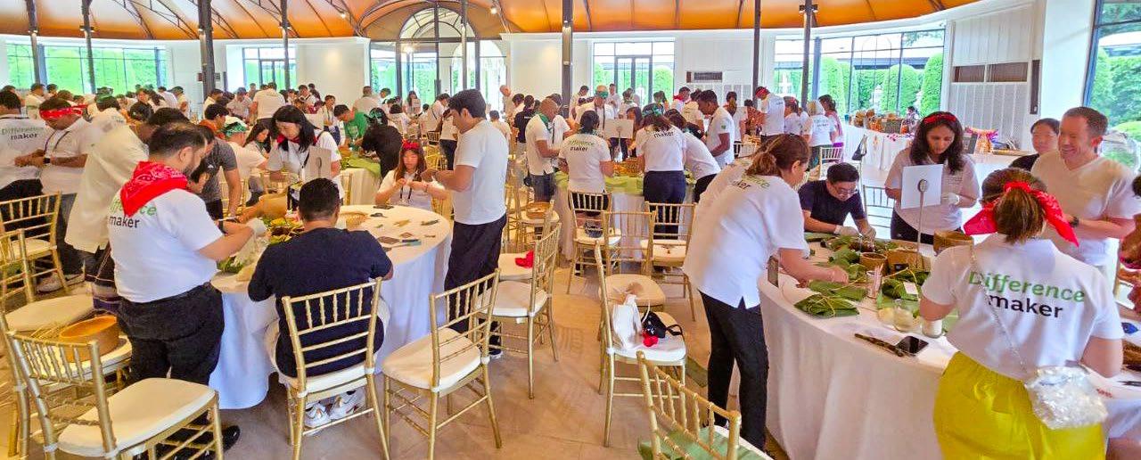 Over 45 minutes, the teams worked alongside Kok Na Sai facilitators to produce hundreds of Tung and Kao Hor, which were later distributed to elderly residents and underprivileged children in nearby communities. The event closed with a celebratory relay and a symbolic “mountain of nourishment,” showcasing the collective effort.