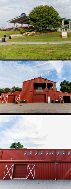 The Livestock Barn is perfect for trade shows and livestock events, measuring 110' x 150' with 42 stalls, a dirt floor, lighting, fans, and heaters.