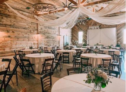 Beautifully renovated reception barn with dining pavilion with seating for 160.