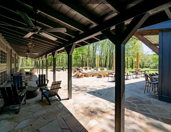 The Pavilion is ideal for outdoor tented events and can host 300+ guests, with an outdoor stage, speakers, and restrooms.