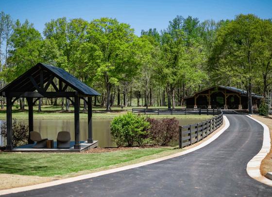 White Laurel Estate in Cumming, Georgia is a former equestrian farm that has been transformed into a scenic wedding and event venue with onsite accommodations and customizable all-inclusive packages Set on 16 acres of rolling countryside, the property features both indoor and outdoor event spaces with picturesque views.