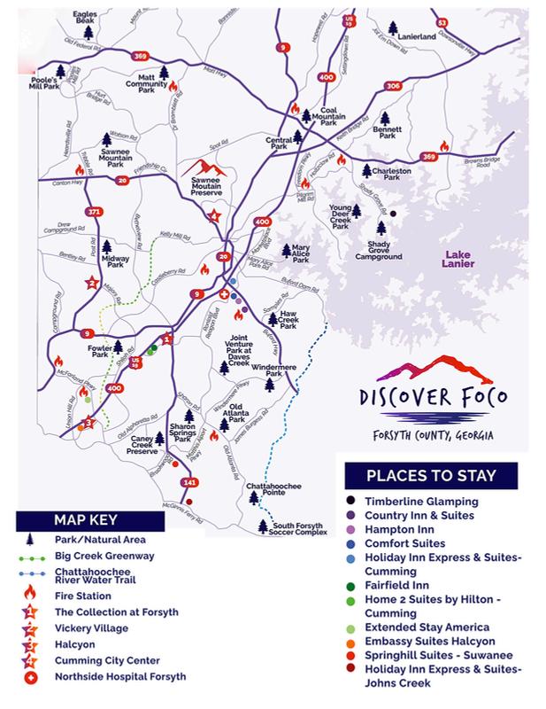 Visitors can also explore Forsyth County’s awardwinning park system of more than 30 parks, offering sports fields, playgrounds, and outdoor recreation.