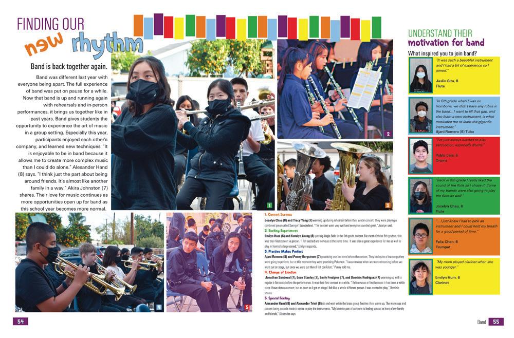 Both the opening and closing spreads support the prominent theme statement on the cover. The opening gives us a list of ways Castle Rock students are motivated and focused after a year of struggling with COVID. That same optimistic voice continues in the ample copy packages. Then, to sum up the great 25th volume, the single closing spread shares how the year looked to students as they “built, explored, engaged” and made the best of the year.