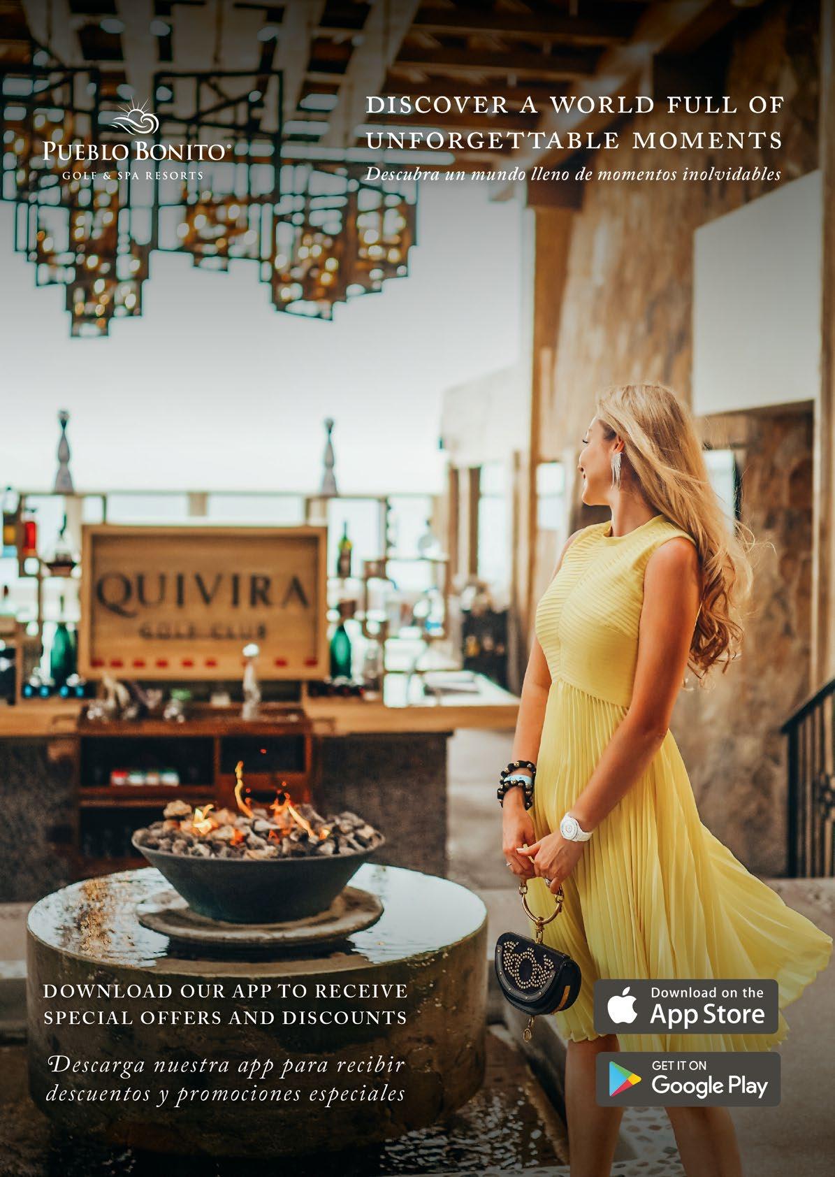39GOURMET GUIDE 8 PUEBLO BONITO GOLF & SPA RESORTS •38 GOURMET GUIDE 8• PUEBLO BONITO GOLF & SPA RESORTS ALL INCLUSIVE PLAN PLAN TODO INCLUIDO Enjoy daily theme night dinners, specialty restaurants, unlimited food and beverage selections, 24 hours Suite Service and much more! Disfrute de noches tema diarias, restaurantes de especialidad, menú ilimitado, amplia selección de bebidas, suite service las 24 horas y ¡mucho más! Pay now and aave up to Pague ahora y ahorre hasta On food and beverages during your stay En consumos durante su estancia Acquire your All Inclusive Plan today! ¡Adquiera su Plan Todo Incluido hoy! Pay 5 days when purchased by the week and get Pague 5 días cuando se adquiera por la semana y reciba ALL INCLUSIVE PLAN • PLAN TODO INCLUIDO Restaurants Bars Snack Bars Pools / Albercas Suite Service Quivira Clubhouse Quivira Steakhouse$ 23 10 7 9 20 8 7 9 20 8 7 9 27 14 9 11 23 10 8 9 Restaurants Bars Snack Bars Pools / Albercas Suite Service