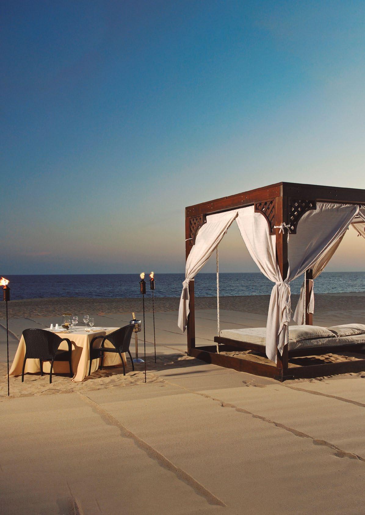 There’s nothing more sublime than dinner for two on the beach – particularly if it’s served in the spectacular setting in Los Cabos, Mexico. Imagine a fourcourse meal served at sunset under the cover of your own teepee.