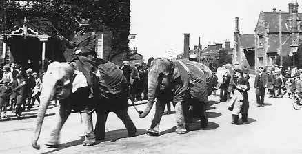 Pictured: below left: The Parade of Elephants leaving March Station on their way to the Big Top. Below right: Mr H. H. Truman and family preparing to leave the Maze, High Street, for the opening ceremony