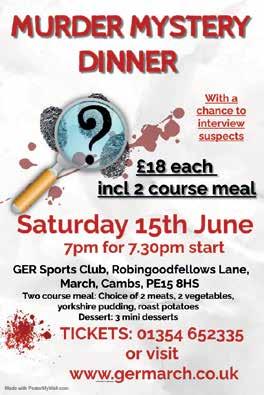 March Bridge Club: At the Braza Club, Station Road, March. Every Thursday 1.15 -4.30pm. Cost £3 per session. Please contact George Jupp on 01354 652586 or 07963 771179