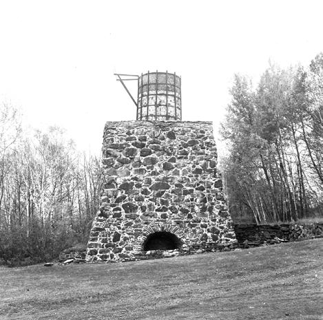 The ore could be “easily blasted and broken into coarse lumps” for transportation to a foundry. Recognizing the ore’s potential, Samuel Smith constructed in 1841 a road from Brownville to where Pleasant River drains Silver Lake. Up went a small town around a tall blast furnace made from rocks, and 18 affiliated kilns for transforming wood to charcoal needed by the foundry.