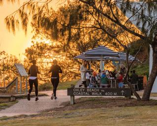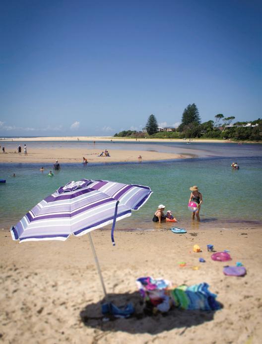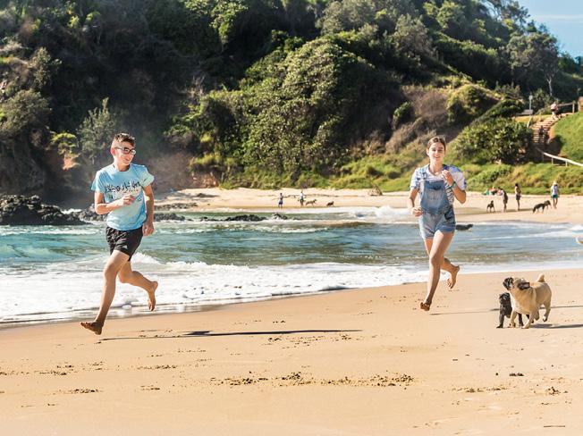 Walk from downtown to Town Beach in just a few minutes! This gorgeous golden crescent is patrolled with a fab kiosk and facilities. Popular with families, surfers, surf schools and sun worshippers. You can also follow the Coastal Walk over the southern headland to Oxley Beach, which is pupfriendly (leashed) and great for picnics. More info on beaches on page 28.