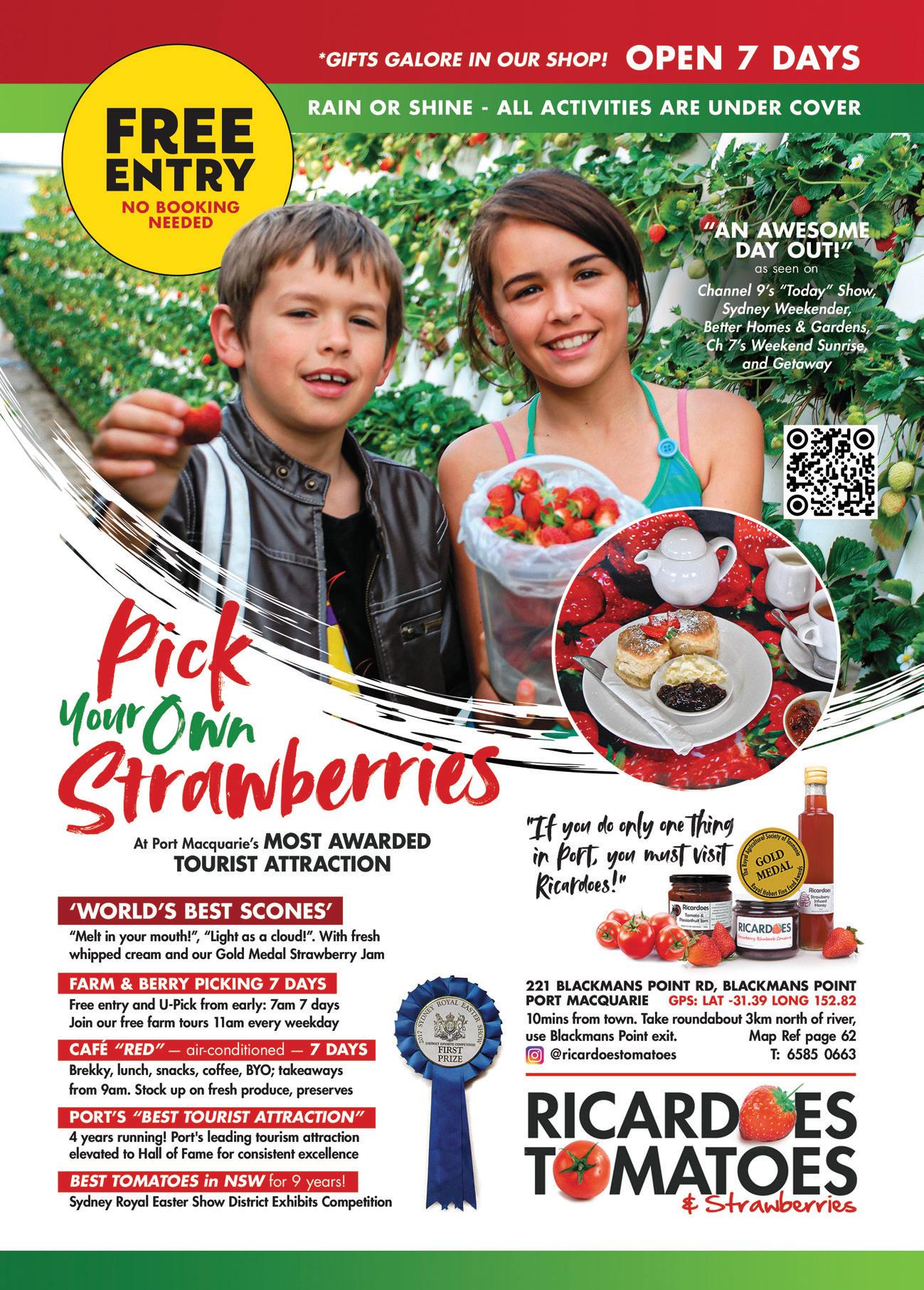 Port Macquarie Museum – Discover the rich and fascinating history of Port Macquarie at this multi-award winning attraction. It’s located in the heart of town and offers engaging exhibits from the region’s convict origins to modern-day stories. With interactive displays, themed galleries, and a charming historical setting, it’s a must-visit for curious minds of all ages. See ad p9. Open Mon-Sat, 10am-4pm. 22 Clarence St, (02) 6583 1108