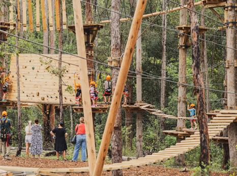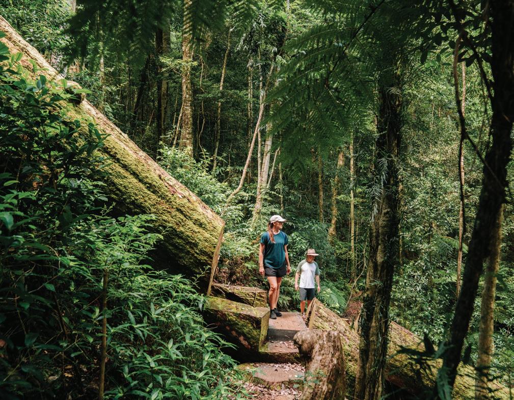 (Pronounced ‘War-hope’!) Just 15 minutes from Port Macquarie, this lively town blends country charm with cafés, bakeries, and boutique shopping. Families will love Bain Park, a leafy haven with a great playground. Take a scenic 1.4km stroll along the Hastings River from Rocks Ferry—complete with picnic spots and a playground, or grab your lunch to go and head out to Cowarra Dam Picnic Area. Head south along Bago Road to the mustvisit Bago Maze & Winery, and visit the ancient Old Bottlebutt Tree on the way. Step back in time at the Timber Town Heritage Theme Park. Love road trips? Wauchope is both RV and motorcycle-friendly and the perfect launchpad for the legendary Oxley Highway ride!