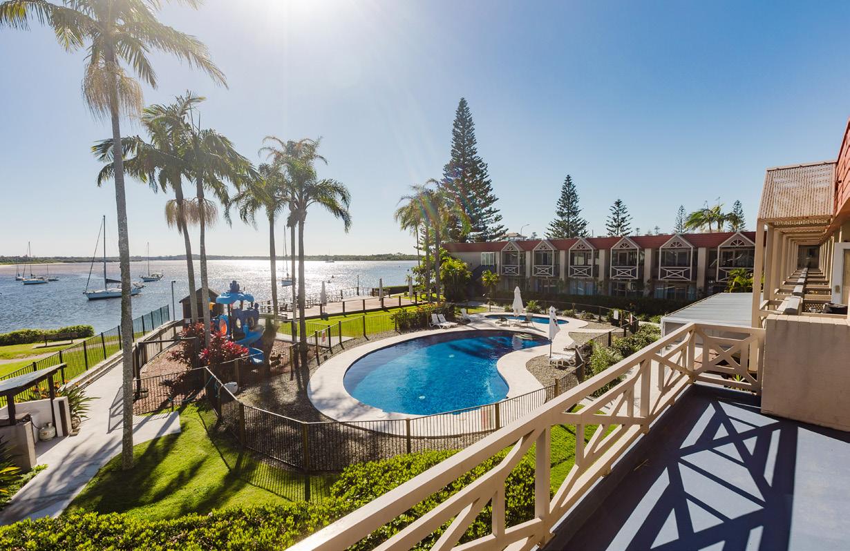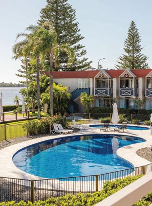 River frontage. 62 refurbished rooms, close to CBD & beaches. Restaurant, Waterside Bar, Pool, Playground. Pet-friendly rooms.