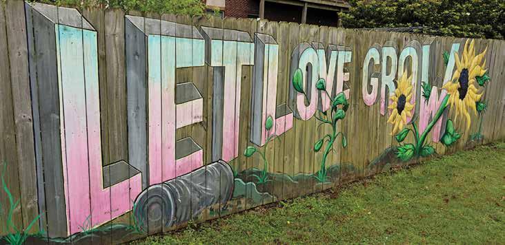 Mural on the fence surrounding the vegetable garden