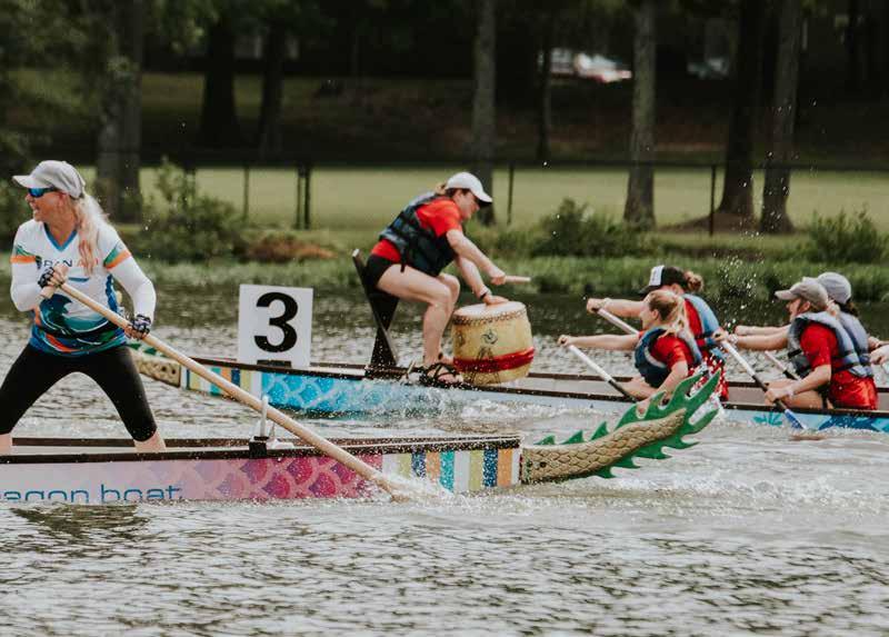 sport tracing its roots back 2,000 years. The community comes together, supplying intrepid teams of more than a dozen rowers who power each dragon boat in the spirit of competition and raise needed funds for the mission.