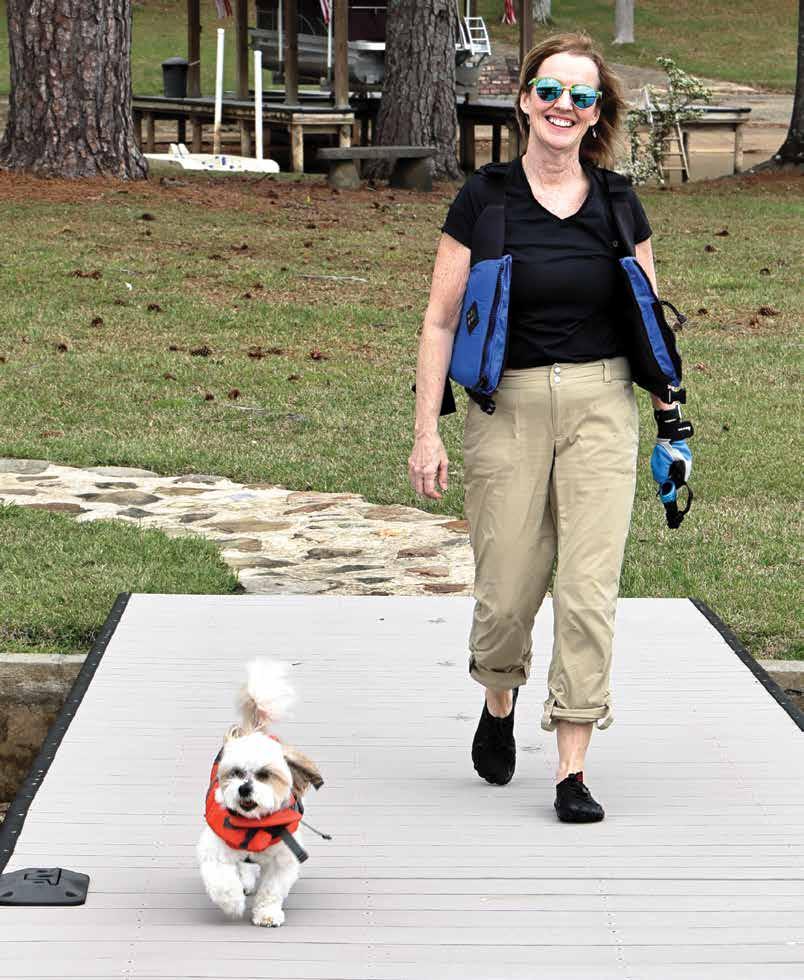 Jackson, a lake dog for the past seven years, sports the latest in sun and water safety gear as he enjoys a day on the water with his people. Photo by Richard Rybka