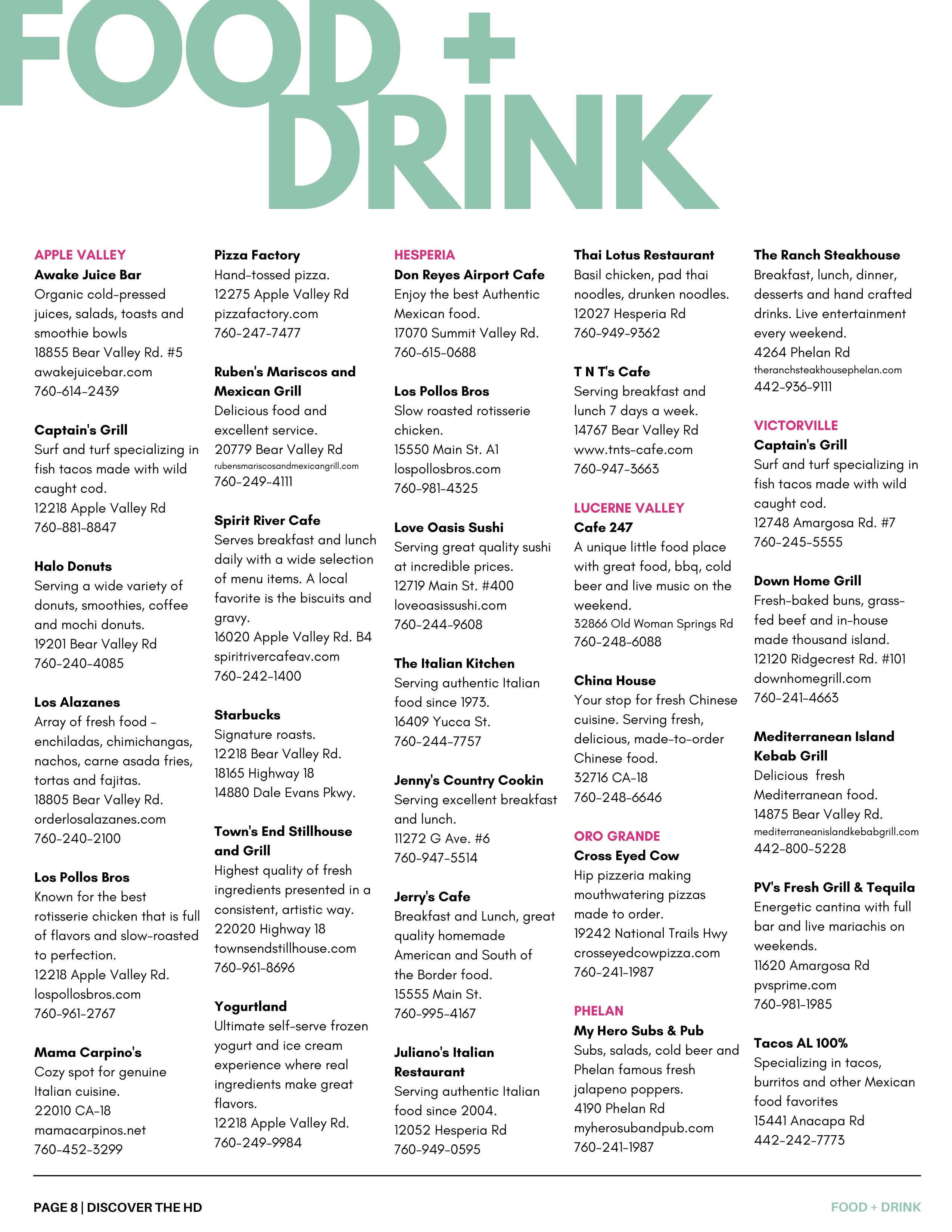 DISCOVER THE HD is inspired by relationships that build community. Join us as we discover community, adventure and local business. Discover the HD is the official destination resource for High Desert residents and visitors.