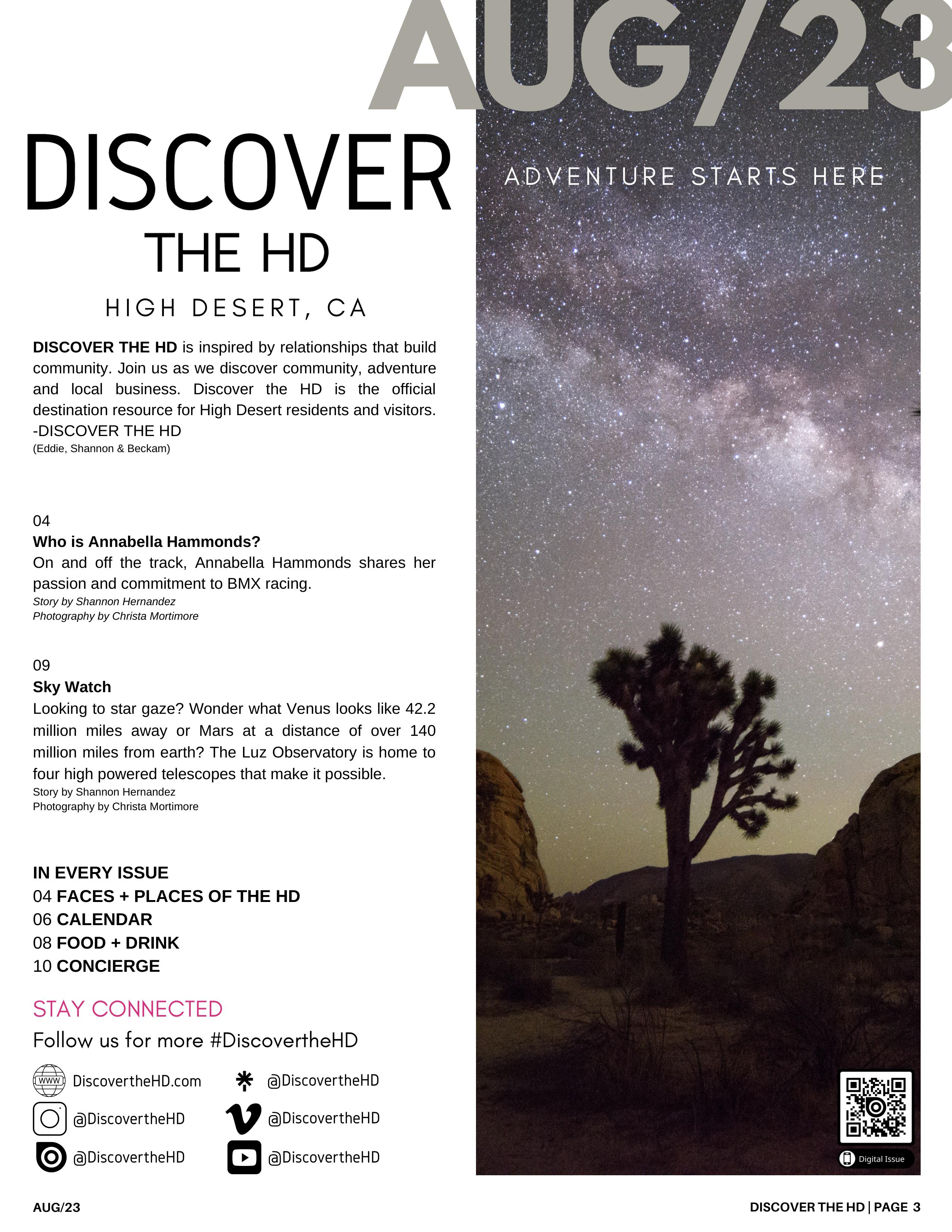 DISCOVER THE HD is inspired by relationships that build community. Join us as we discover community, adventure and local business. DISCOVER THE HD is the official destination resource for High Desert residents and visitors. -Discover the HD (Eddie, Shannon & Beckam)
