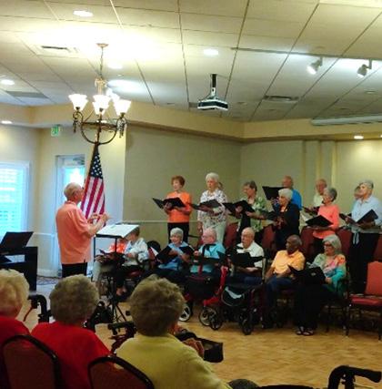 Our chorus performed for the community, led by resident Mr. Moye.