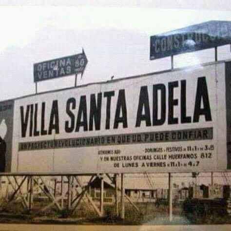 A inicios de la década del sesenta, la familia dueña del fundo Santa Adela, vendió su terreno a la empresa Constructora Delta, que a su vez le pidió a la compañía del arquitecto Fernando Castillo Velasco, que hiciera el diseño de una villa moderna, incluyendo sus casas y su equipamiento exterior. Así fue como la villa Santa Adela fue tomando forma, los primeros habitantes llegaron en 1964, a casas confortables de un piso, con pisos de parqué, tres dormitorios, dos baños, un patio adelante y otro atrás. En los años siguientes la empresa fue construyendo más casas, ocupándose también de los espacios comunes, con pequeñas plazas y árboles de distintos tamaños, tiendas para resolver las necesidades básicas, además de una capilla, todo siguiendo el diseño original. Poco tiempo después, al lado de la capilla, se construyó una escuela pública, la E-269, que hasta hoy educa a los niños y niñas del barrio.