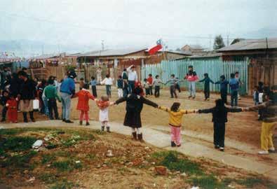 Villa Zaror y el de la Villa México, en unas canchas de tierra que habían detrás de la actual autopista Américo Vespucio. “Esos partidos eran muy intensos y generalmente terminaban en tremendas grescas entre los jugadores”, afirma. También señala que junto a un grupo de niños y niñas vendían diarios y botellas para financiar la construcción de la parroquia de la Villa México, y luego, cuando ya estaba construida, hicieron lo mismo para levantar capilla de su propia villa.