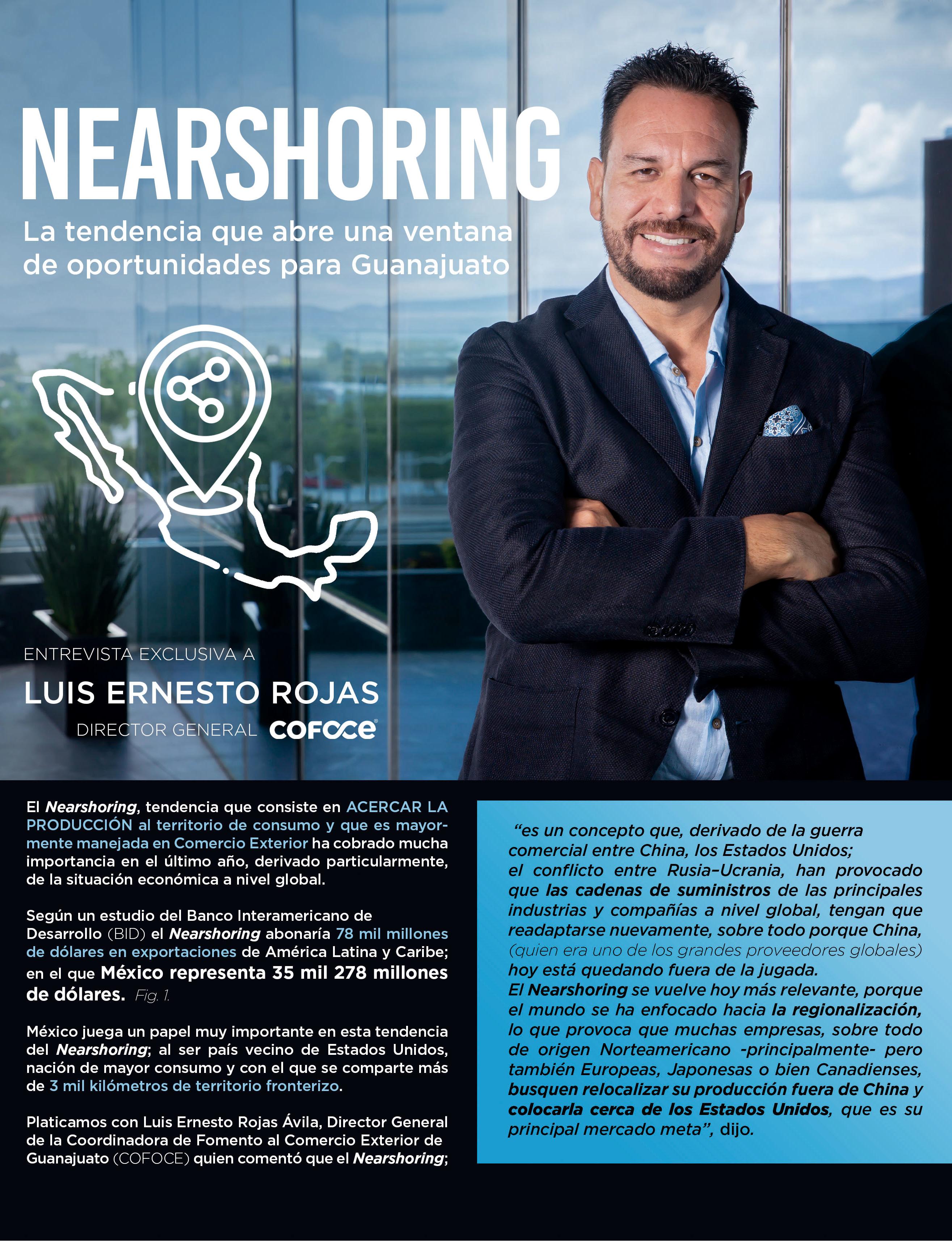 Bienvenidos a la primera edición de nuestra revista digital COFOCE GO; es un honor para mí presentarles este proyecto, en el que hemos trabajado arduamente para dar conocer información indispensable de los cambios y grandes logros que están generando hoy día las empresas de Guanajuato; dentro de estas páginas encontrarán la gran oportunidad que significa el Nearshoring para México, pero sobre todo para Guanajuato.