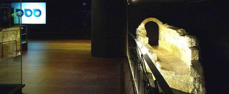 C Un fragmento de unos 8m de longitud de la Alcantarilla del Arenal, construída en el siglo XVI, para dirigir las aguas residuales desde la Puerta del Sol hacia la actual Cuesta de San Vicente.