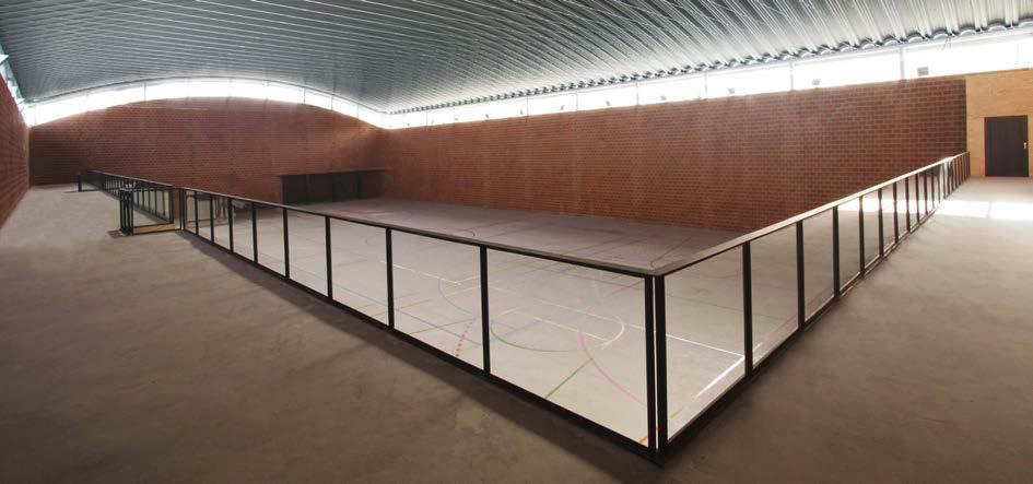 sistema modular fijado con tornillos a la estructura, que optimiza y resuelve por una parte su traslado y montaje en obra y por otra sea de fácil reposición en caso de impacto o deterioro.