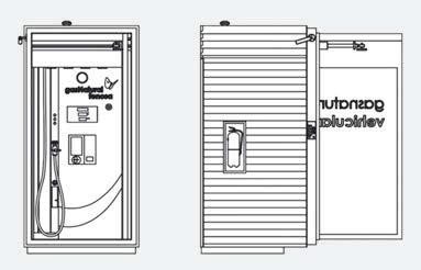 Al abrirse la puerta principal en su posición operativa o de servicio, despliega una cubierta vidriada que delimita un ámbito protegido de las inclemencias ambientales, siendo un espacio óptimo para albergar el panel que contempla todas las instalaciones oportunas para el buen funcionamiento del suministro de gas, consulta y pago por parte del usuario.