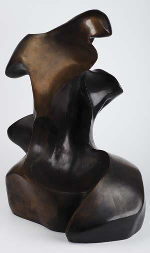 formas y volúmenes que se desmaterializan en el espacio. Creemos ver ciertas connotaciones formales con la escultura del «Equipo 57», en ambos se mantiene una unidad entre superficies cóncavo-convexas que van produciendo una continuidad dinámica.
