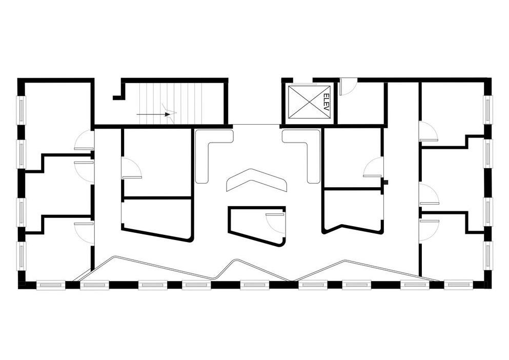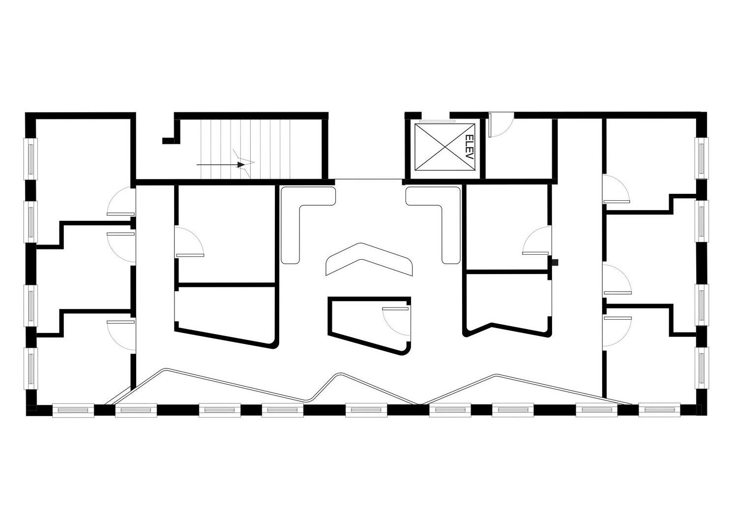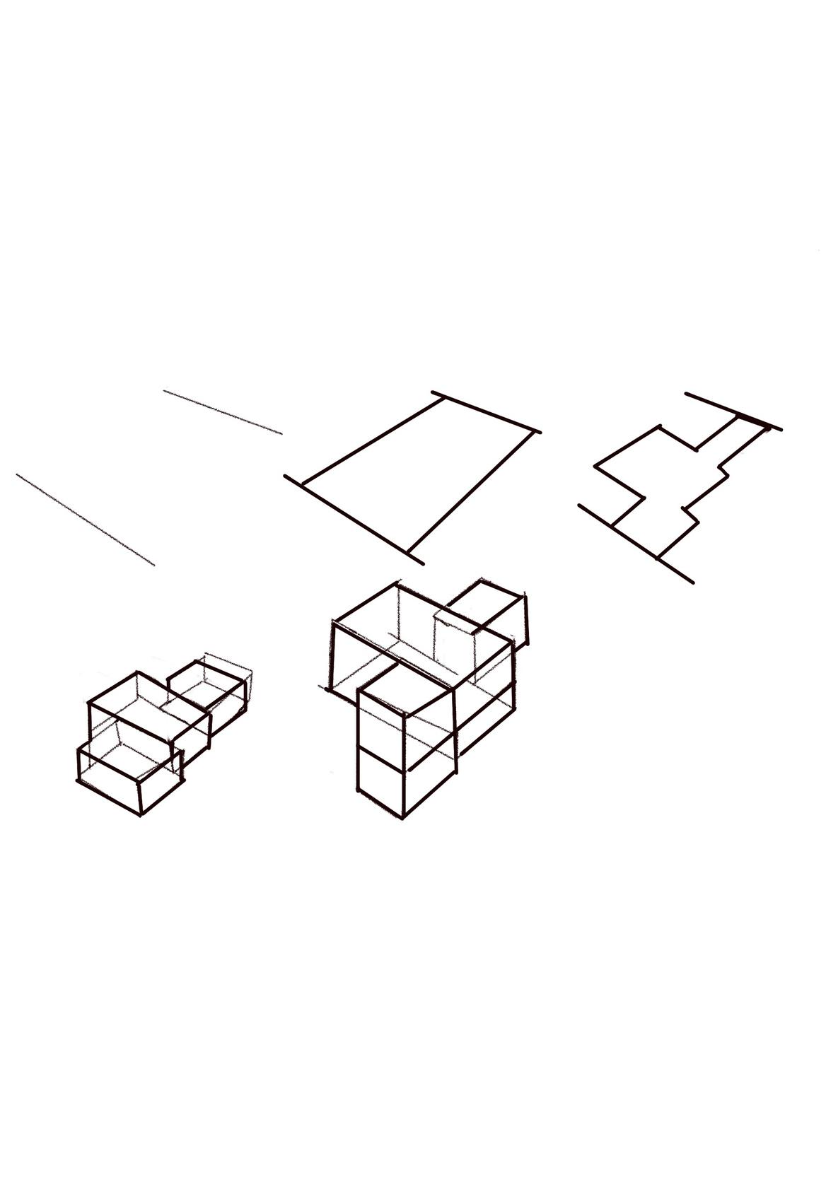 The building's composition is a harmonious interplay of rectilinear volumes, delineated by crisp edges and defined by proportional relationships, creating a sense of order and stability within its architectural expression. Each rectangular form, carefully arranged in sequence, contributes to the building's overall visual rhythm and spatial coherence, embodying a timeless elegance in its design.